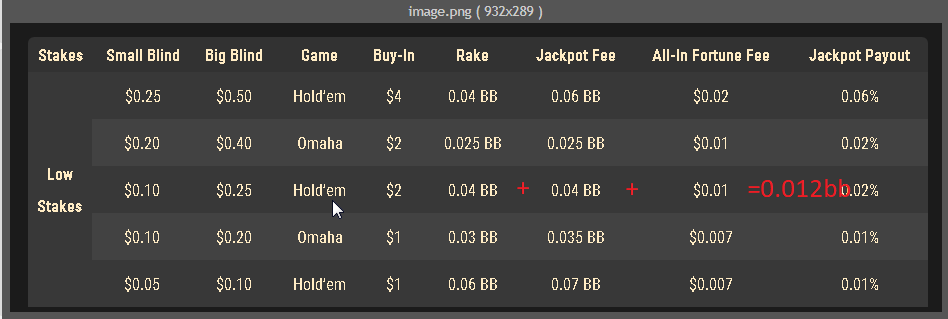 Ещё раз акцентирую внимание на том, что рейк в отличие от кэша берется не за вход в игру, а за просто так каждую раздачу. В обычной игре ev фолда 0, надо играть руки лучше, чем в 0. В этой игре ev фолда -0.012bb, надо играть руку лучше, чем -0.012bb. Да можно учесть рейк и посмотреть играется ли рука лучше чем в -0.012 А можно убрать из числителя и знаменателя одно и то же и считать в безрейковой среде, но чтобы рука игралась лучше чем в 0.