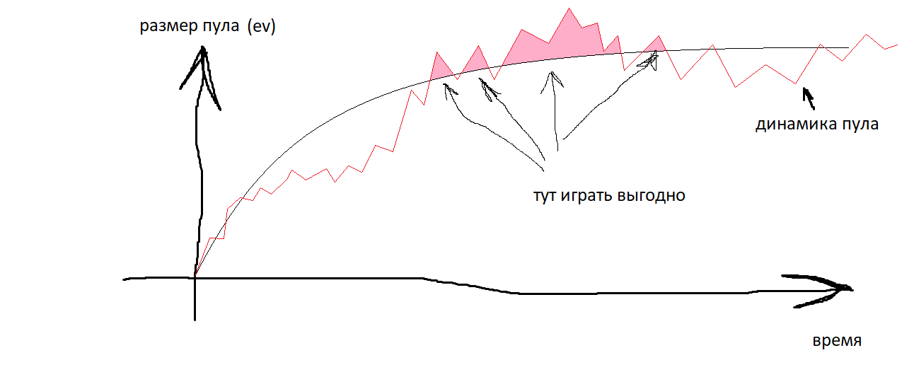 Надо играть, когда пул большой и не играть, когда пул маленький. Поэтому прямо сейчас я не играю, а вчера пул был 900к$$$ и это настолько хорошо, что я шотал лимит старше, даже несмотря на то, что уже поймал джек пот в тот день, ведь это математически никак не меняет шанса поймать ещё один.