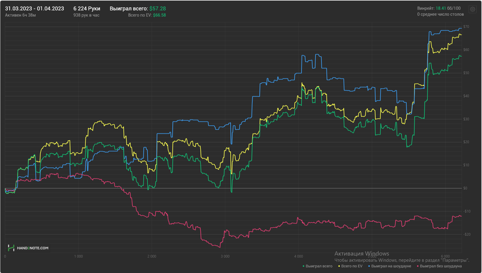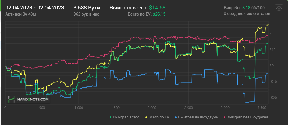 Итого чистого рейка выходит 4bb/100, если показываешь бОльший винрейт то плюсуешь - всё очень просто.