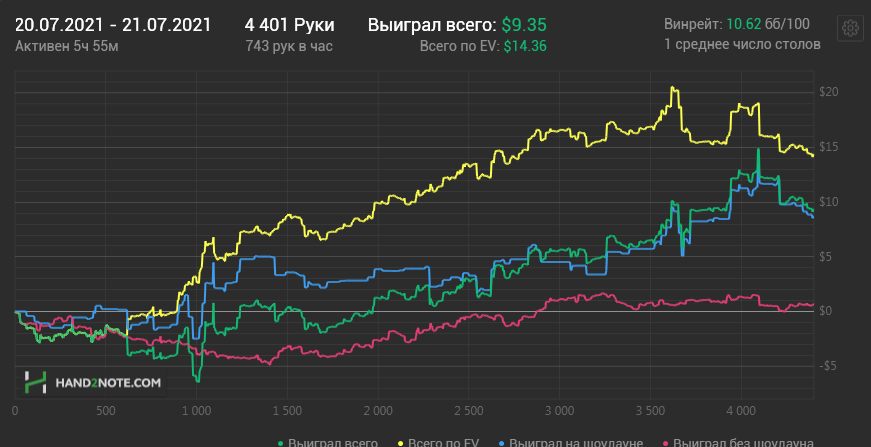 Собственно о делах: где-то в то же время покатал пару дней один столик з500 под пивко, где-то +2би вышло с евешкой около нуля, начал з10, там насували где-то на 7би, правда там около 10к. После были дела в оффе, так что не играл, как и эти выходные похоже тоже. 4,5к вывел, бр 150.