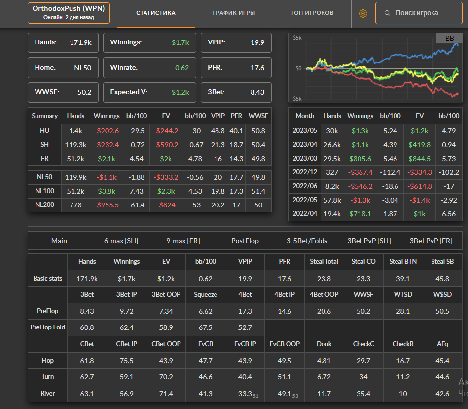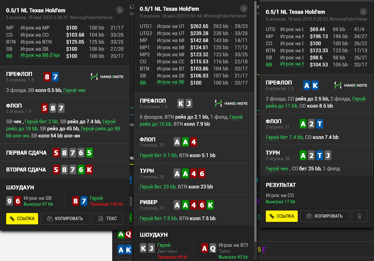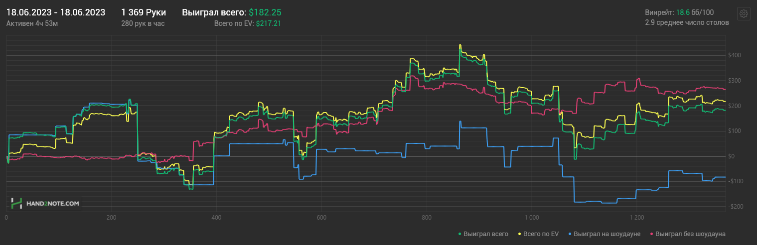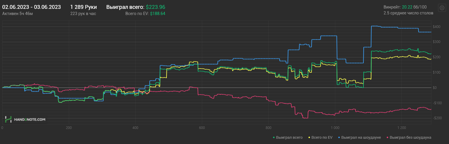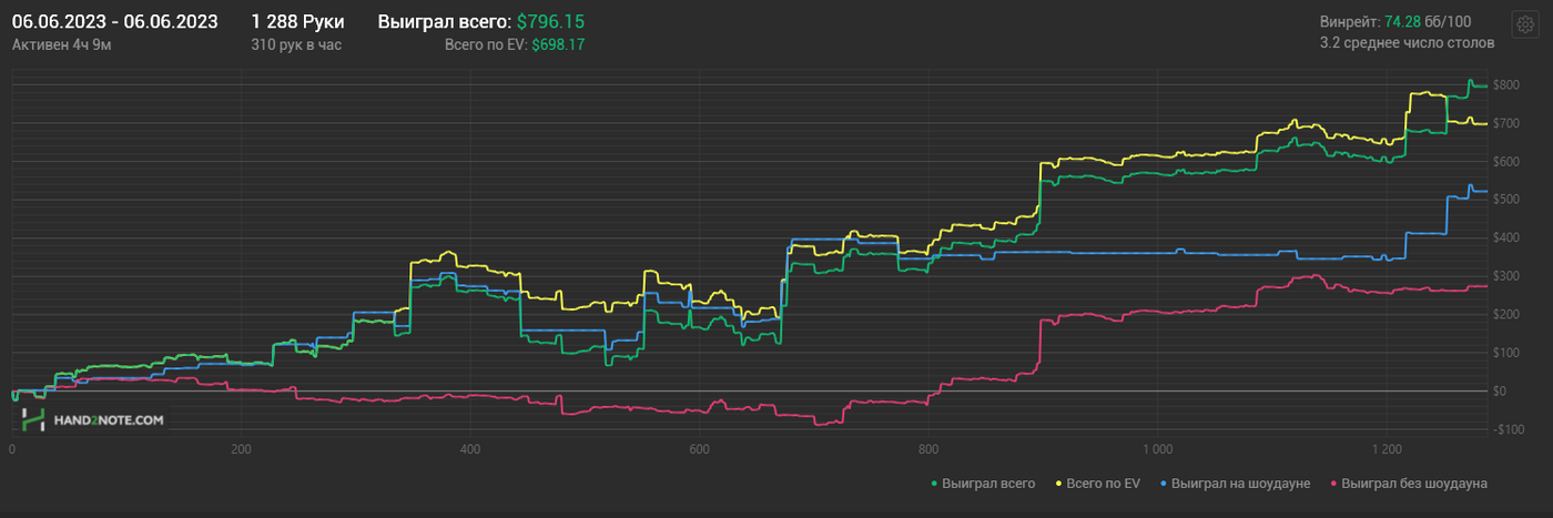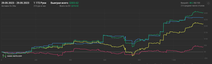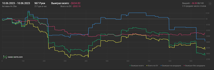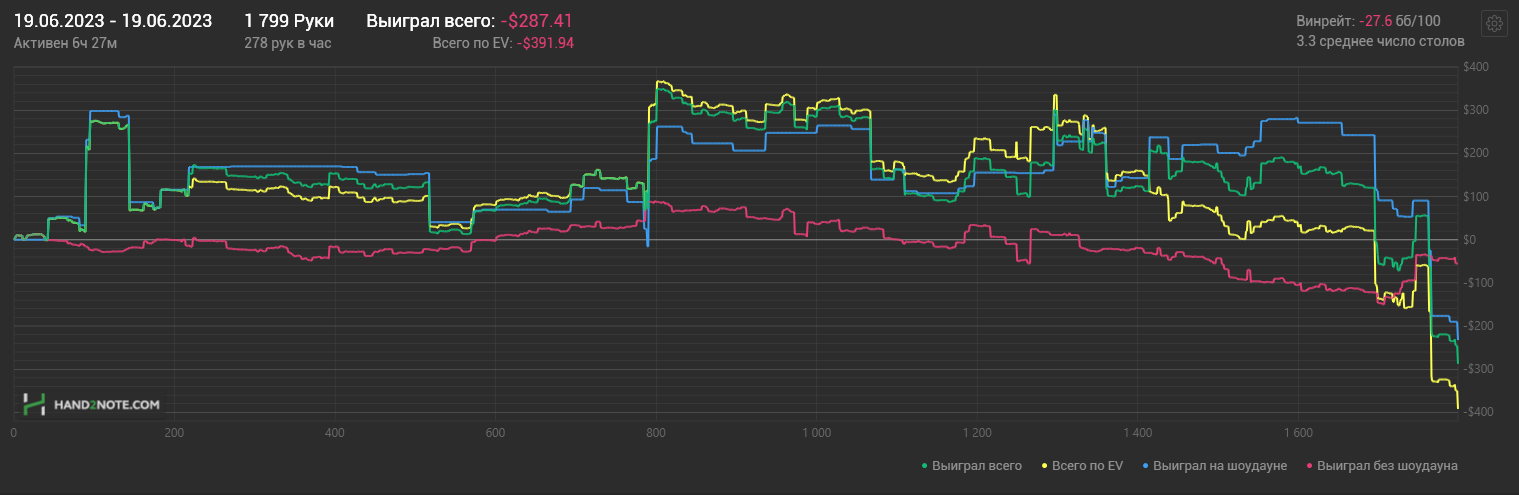 Эх, в первые дни месяца я был в стадии максимального выгорания с удивительной дикой природы в зуме и не притрагивался ни к теории, ни к столам. Затем числа с 10, стало интересно просто раздачки поразбирать чужие, и вот так, постепенно разгоняясь, я набрал к сегодняшнему дню чемпионскую дистанцию в 16к рук!