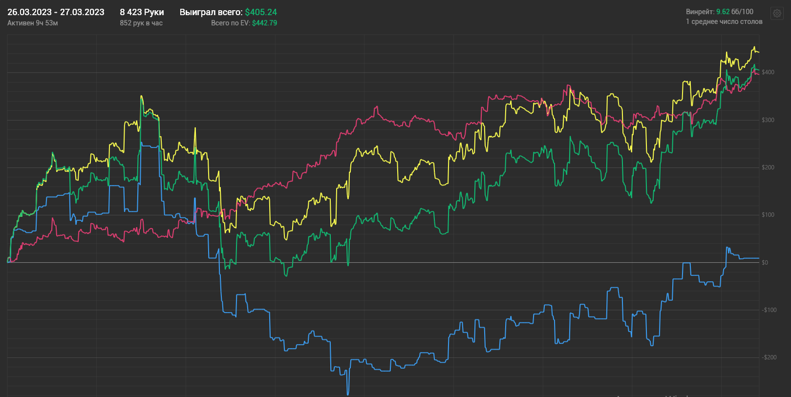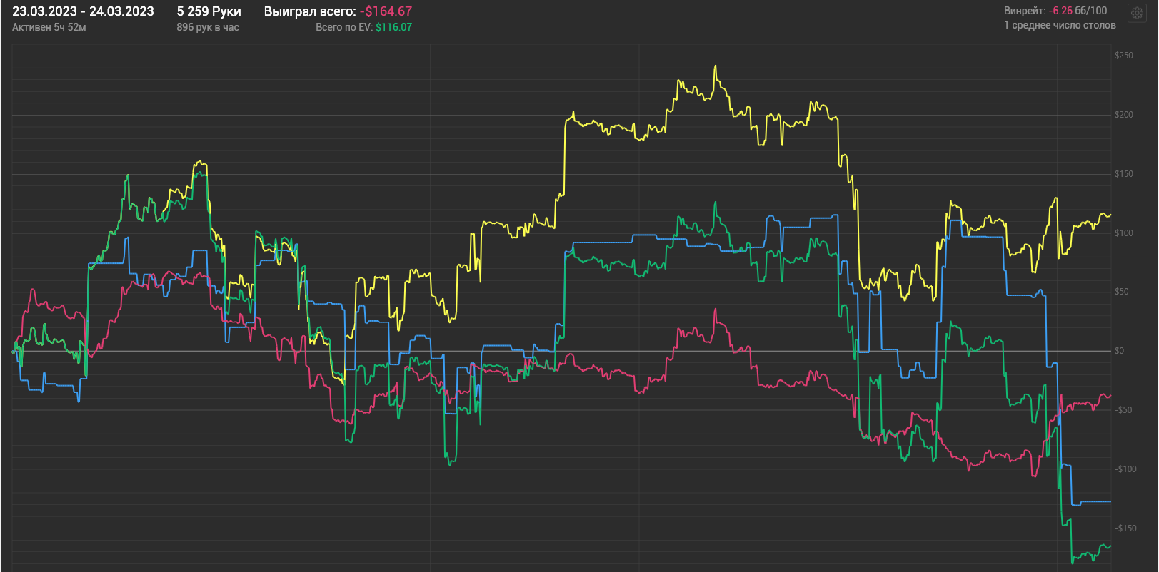 Сегодня что-то не мог заснуть как обычно, поэтому принял волевое решение как раньше покатать 4 стола зума с десяток часов, захватив полностью прайм. Понемногу начинаю понимать тенденции поляны и размечать ликовых регов и фишей.