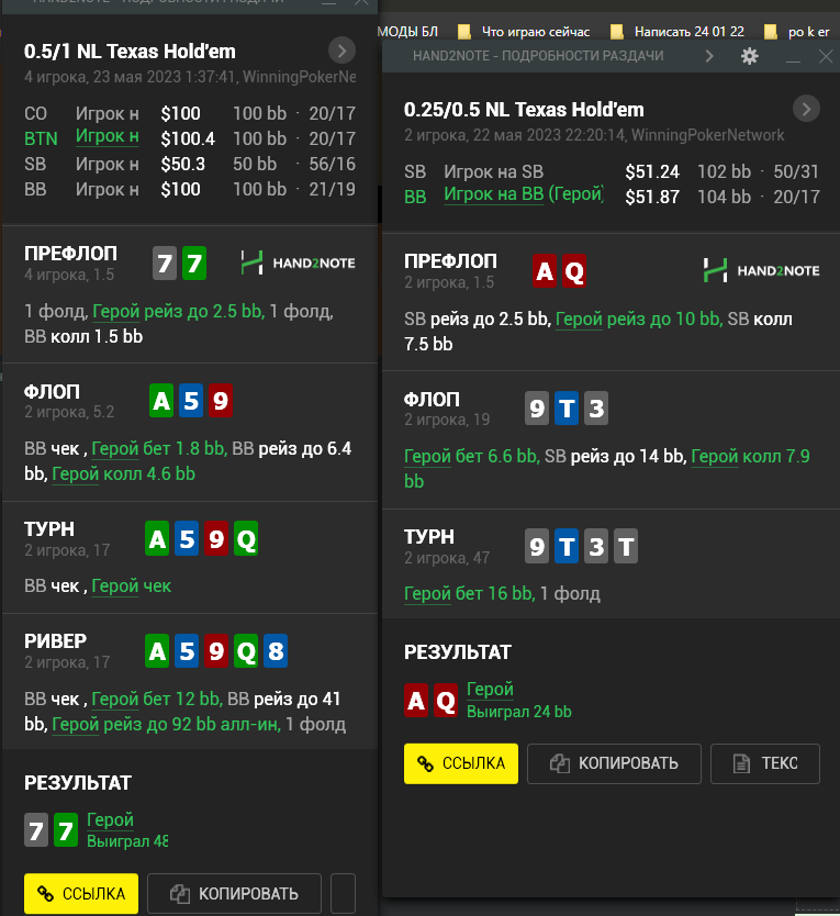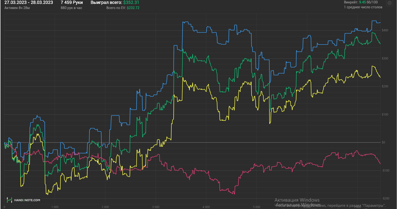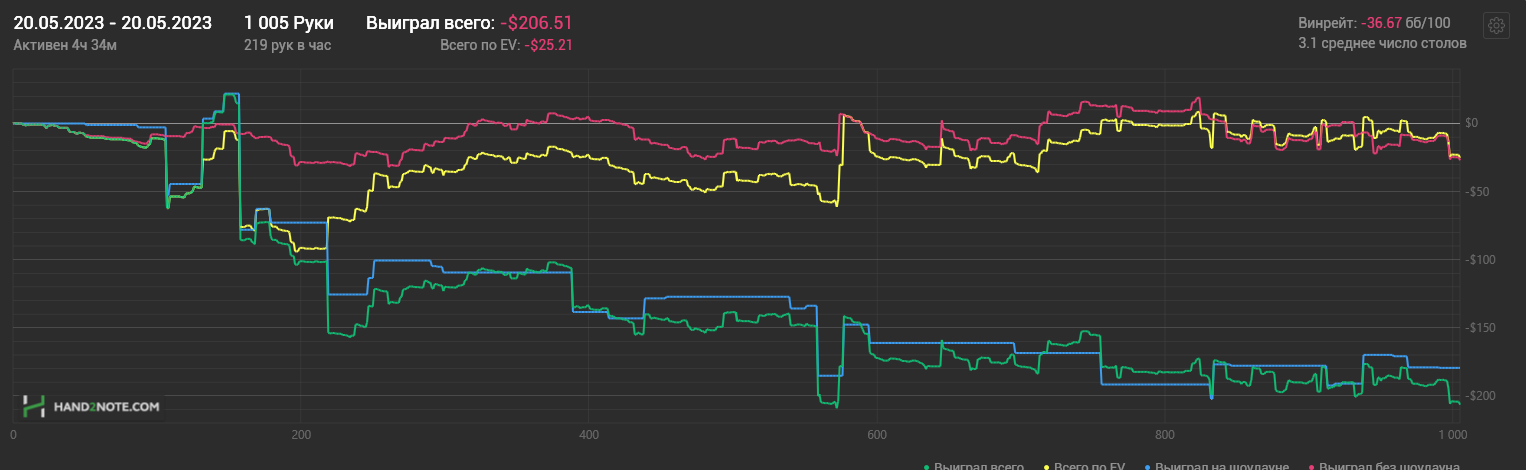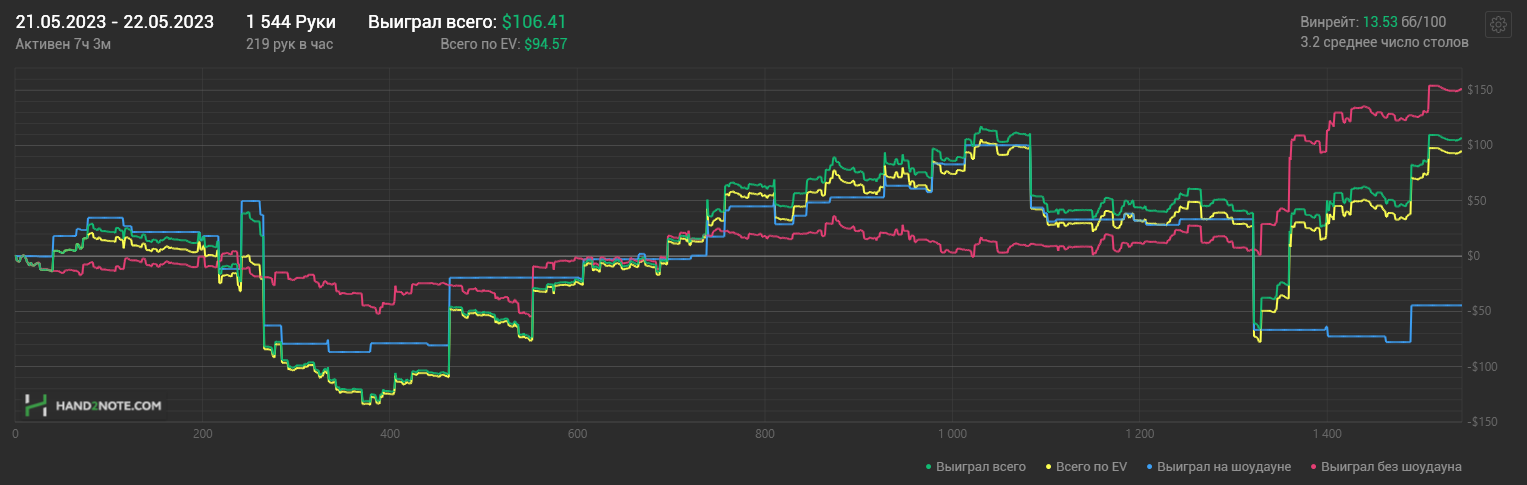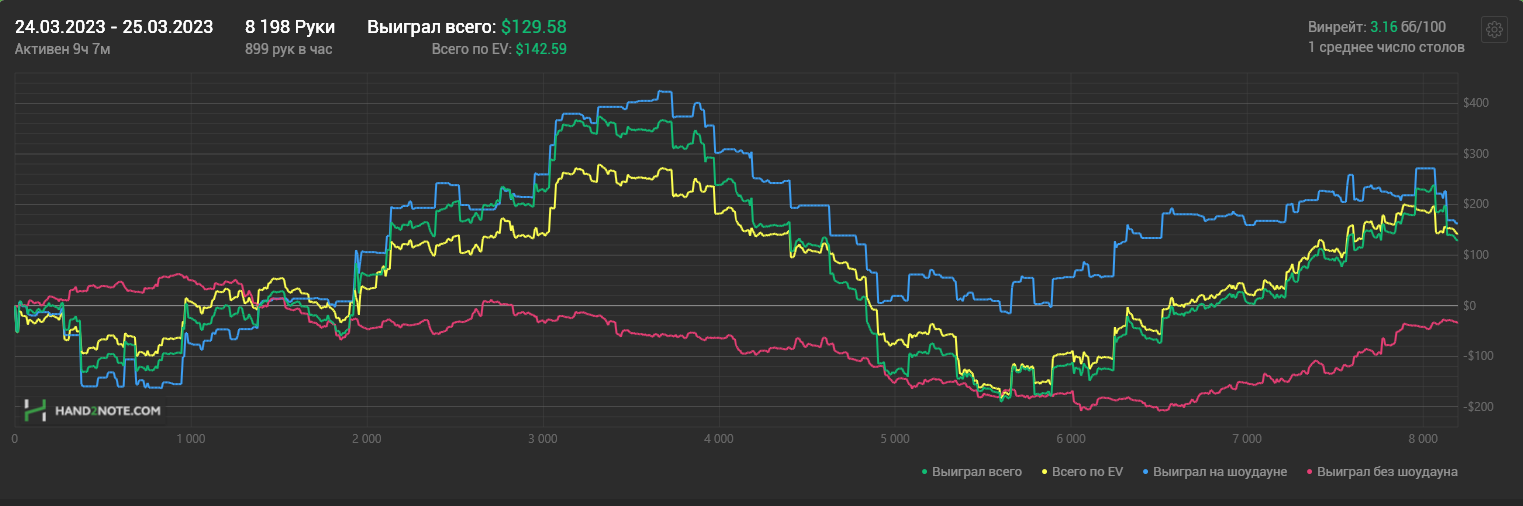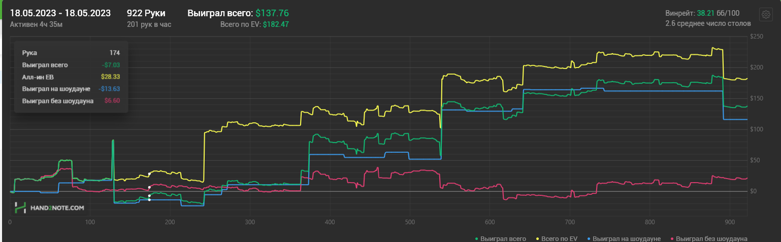 Начинаю увеличивать количество рук и столов, но ко 2 часу игры оперативки в мозгу пока не хватает. А потом поел, посмотрел тредик на дваче и уже спать хочется, потому что 3 день подряд пытаешься восстановить режим. Хотел 2 сессии, вышла одна, завтра будет лучше! А вообще есть ощущение, что я конечно селекчу пока что в никуда, на чико в первые дни так же было. По кассе +44 https://youtu.be/-I85HZlVvx4
