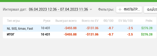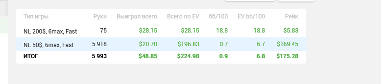 Вчера не играл и сегодня не буду. После того, как добью гонку, попривыкаю к рег столам конкретно впна на 50 и через пару дней начну играть 50-100. 13.5/50 часов теории Концентрация 10/10 во время просмотра качественного контента Кэшаут 250/300 на софт и шавуху.