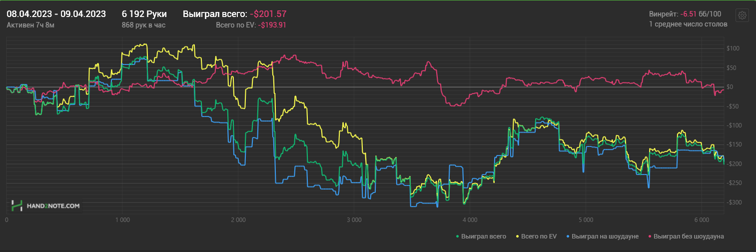Играю в покер год. Начал с зум2, дошел до з50, и ушел на рег столы в середине января. После помутнений в разумах главарей чико, ушел на впн месить рейк/селектить фишиков, еще не определился.. Планов никаких нет, новый день - новая жизнь и все такое. Курочка по зернышку, смекаешь? С апреля здесь будет что-то вроде ежедневника по часам или еще каким-то пустотным категориям, не имеющим ценности на короткой дистанции, но при постоянности, отображающих, что я становлюсь все более дисциплинированным.