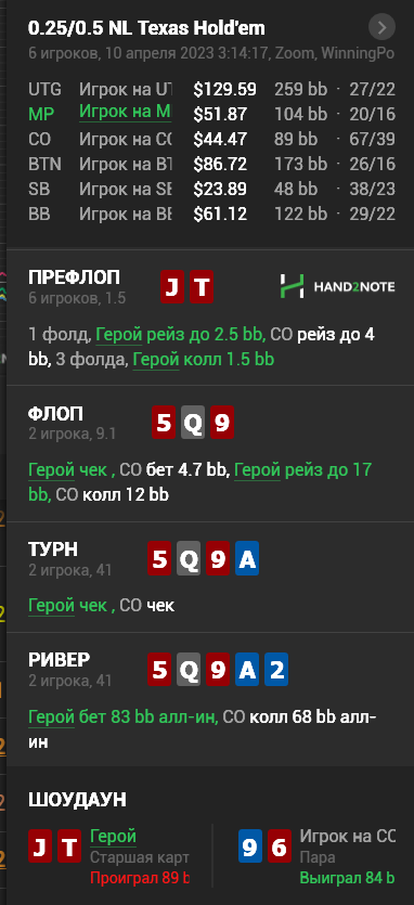 Ты понимаешь, что на том отрезке стат, которые отображаются в чьем-то хаде у тебя завышенный фолд на 4бет, когда в тебя прилетает таковой с T6s КО в СБ...