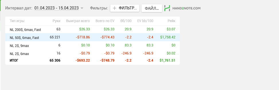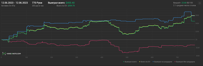 По кассе +761(одна раздача со страдлом почему-то не засчиталась)