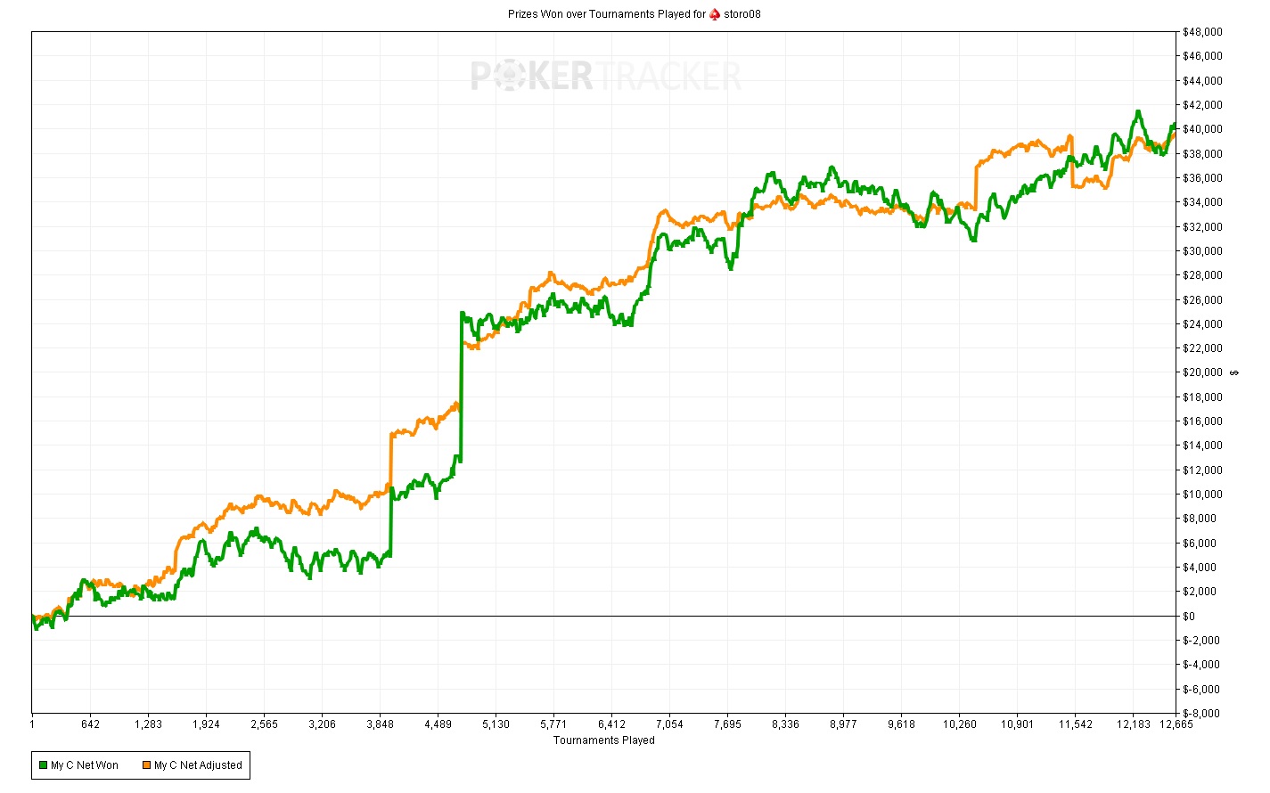 В сегодняшнем шутауте на 10к мне показалось странным что зарегано было 19к+, а по окончанию первого раунда осталось 13к. Тоесть 1700 с хуем столов только в первом раунде сыграли в ничью. Охуеть просто. По окончанию второго было 9к+ Ну и в третьем я закончил на 5к+ позиции. Я хуй знает каким отбитым лудопидором нужно быть что-бы надеяться на победу, поэтому не понимаю хули вы тут раскукарекались. Лучше бы графики спинов повыкладывали, если есть тут те кто по 30+ в день катает хотябы.