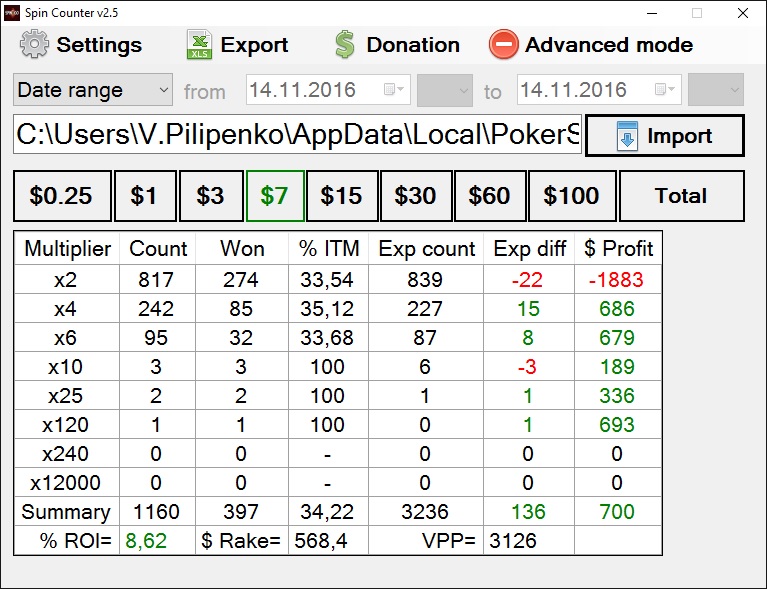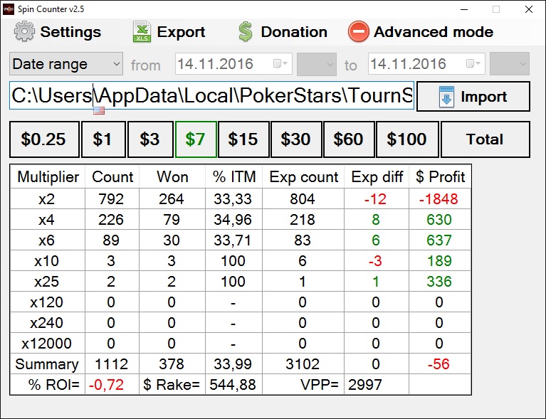 >>31282 Не играй в это дерьмо. Я на лимите в $7 имею такие результаты (пикрил). Иногда выходишь в плюс, а потом как обосрёшься в полосе тильта. В общем somethink like a lottery. Хуита. Мне х120 выпадало ОДИН раз за два года игры. А отыграл я дохуя. Результаты из таблицы - меньше чем за неделю. Денег нет, ещё бы покатал. Обычно ебашу 4 стола. Если психану - 12 столов. Вообще забудь про покер, займись лучше чем другим.