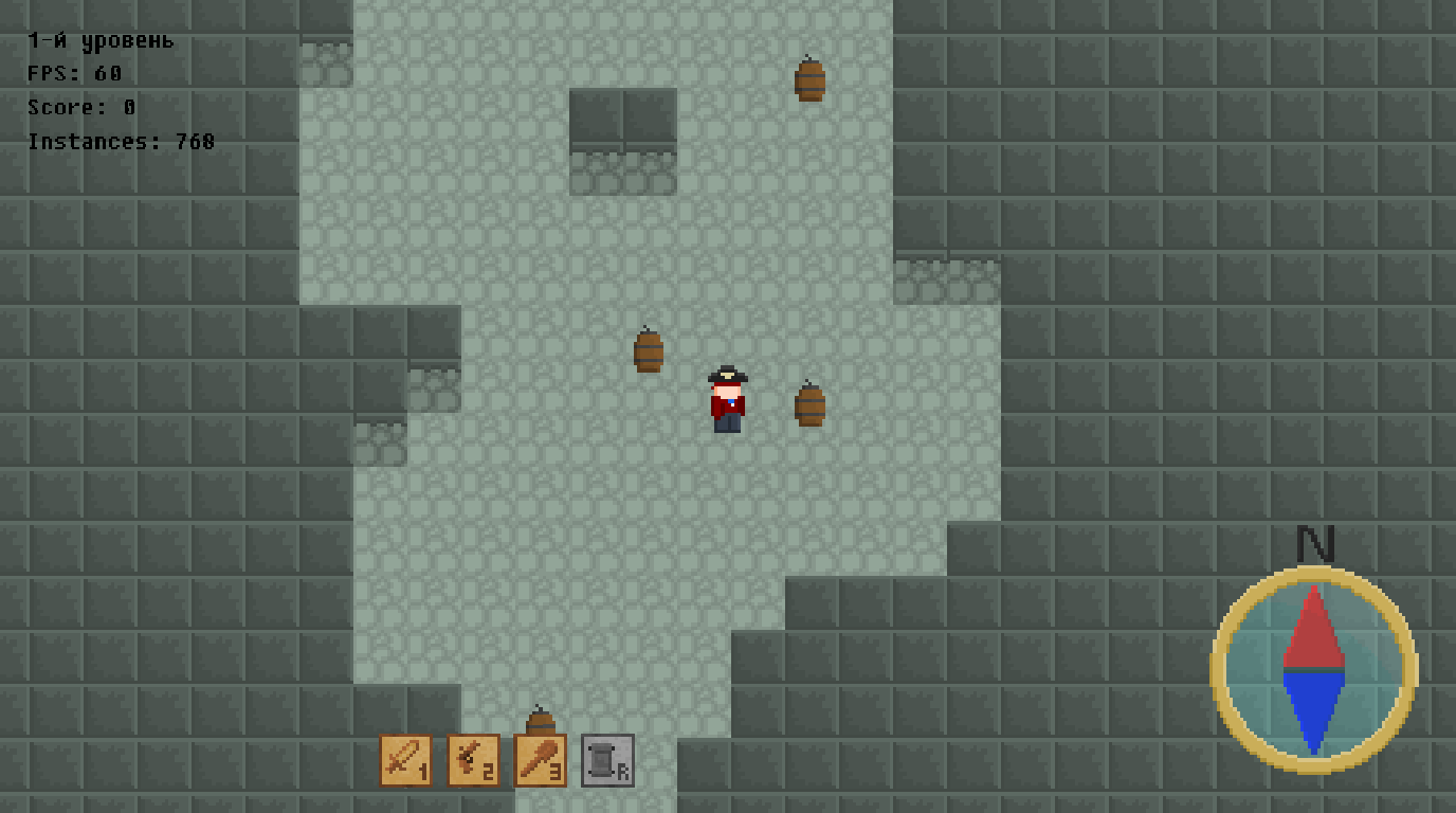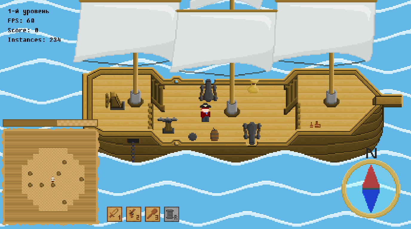 Только-только закончился TWG, а вдохновение осталось. Значит, нужно продолжать пилить свое поделие влажно мечтая о релизе. Тред существует как мой дополнительный мотиватор для продолжения разработки (ну и отчетник, если кому-то будет интересно наблюдать за процессом). Жанр: roguelikelite, adventure Платформа: GameMaker Pro 8.0/GameMaker Studio 1.4 Плаваем на корабле по постоянно меняющемуся океану, посещаем острова в поисках сокровищ, исследуем пещеры и подземелья(new!), собираем части артефакта, указывающего путь к источнику бессмертия. Со времени конкурса концепция игры была пересмотрена - теперь это Dungeon Crawler, прикрученный к морским путешествиям. Системы инвентаря как таковой нет - вместо этого ГГ получает бонусы от найденных кладов/артефактов и новые инструменты для аннигиляции многочисленных монстров.
