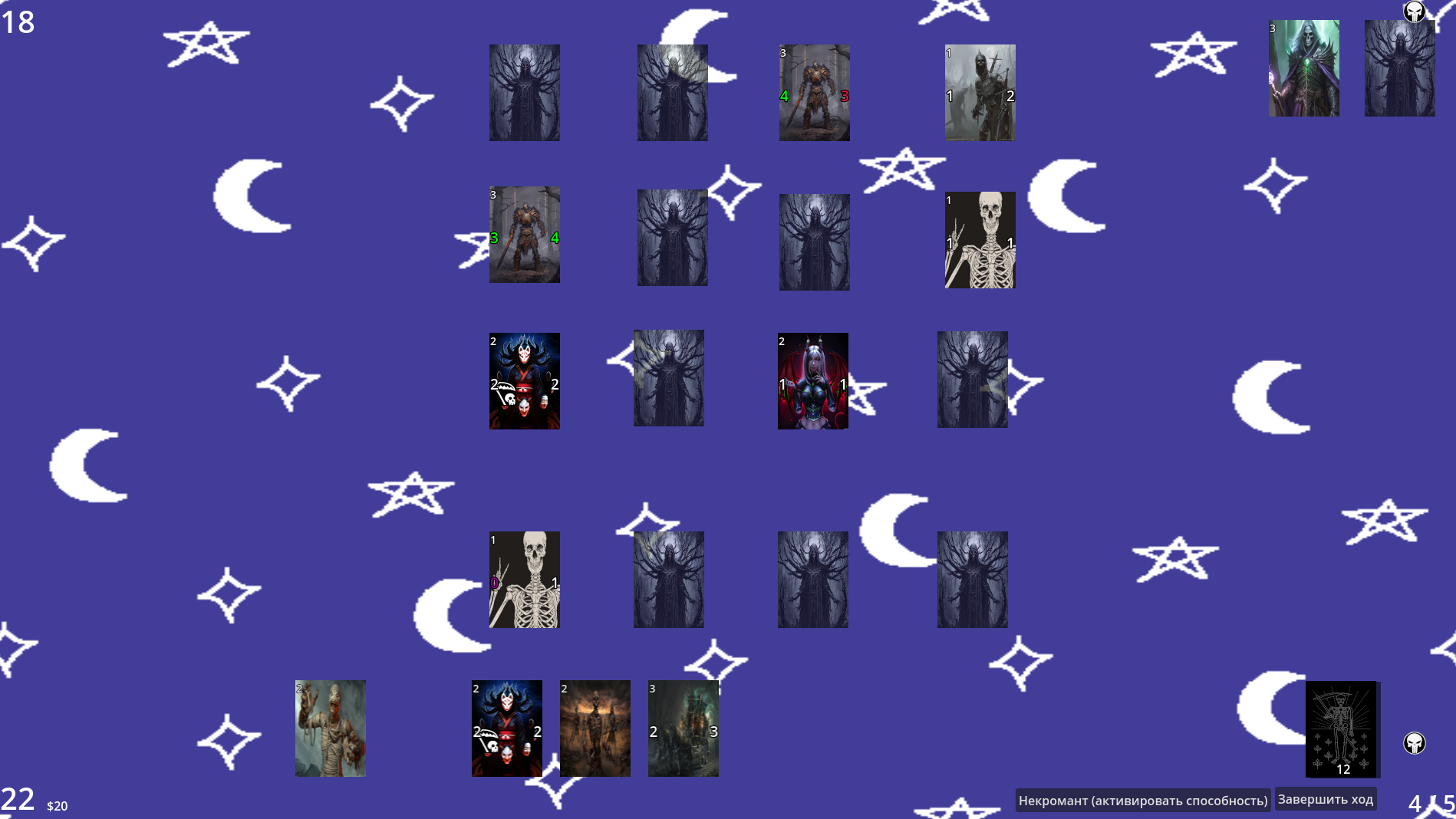 Нанесение урона врагам и вражескому герою. Механики Боевой клич и Предсмертный хрип, поддержка ключевых слов. Карты поддержки с активными и пассивными эффектами. После победы — переход в магазин, где можно добавить в колоду карты существ, заклинаний или поддержки. 6 классов, каждый со своей уникальной способностью и набором карт.