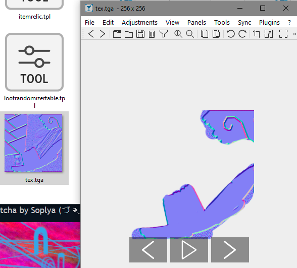 решил экспортнуть текстуры из игры titan quest. игра хранит текстуры в хуй пойми каком формате, это вроде DDS, но и не DDS (никакой dds viewer их не распознает), короче какой-то кастомный DDS похоже (хотя и отличий почти нихуя нет, кроме "битых" сигнатур), данные в изображения в данном случае хранятся без сжатия, просто в сыром виде, в формате BGRA. столкнулся с такой хуйней, если это карта нормалей, то при считывании текстуры "как есть", получаю пик 1. т.е. где-то альфа канал = 0. если альфа канал принудительно везде сделать 255, то получаю пик 2 (и это вроде как похоже на осмысленную текстуру/рисунок). первый же пик вроде и тоже похож.