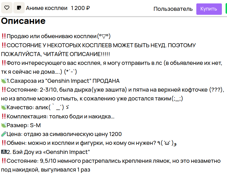 >>906601 Я посмотрел на замечательные качественные костюмы ручной работы, а свои обляпанные костюмы с алиэкспресса ты уже себе оставь, мне они ни к чему. Держи свои фетиши о ношенной заляпанной одежде при себе.