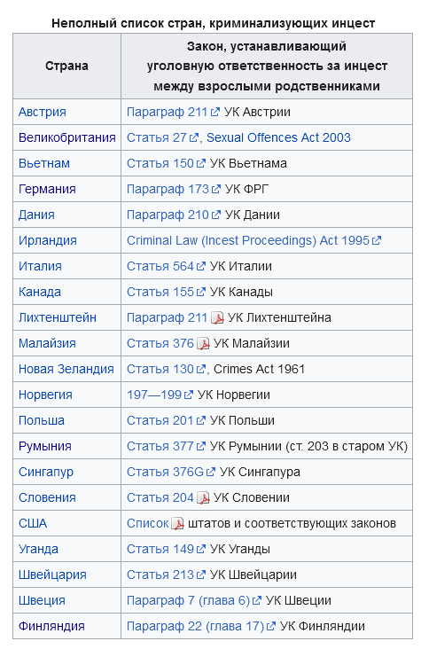 >>922174 > где реальная свобода Дело не только в законе, но еще и в реакции общества. Явление может быть не запрещено, но люди будут на него негативно реагировать. В таком виде инцест и в России не одобряется.
