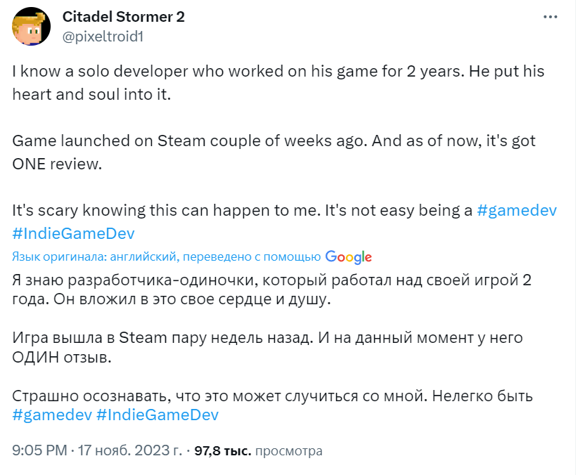 например чел пишет: >Публикации на Reddit в среднем собирали 1000 upvote а это нихуя нетипично высрать игру на реддит и набрать там 1000 апвоутов, для этого нужно показать что-то интересное. скорее прилетит бан и пост удалит мочух