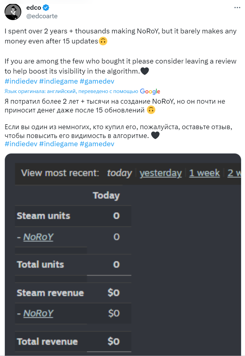 >Это шиза это не шиза. средний доход инди-игры постоянно падает. библиотека игр постоянно растет. цена игры падает