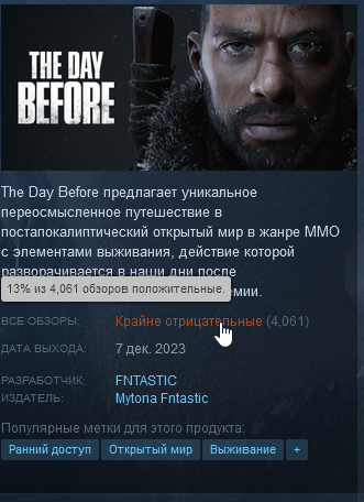 грустно. наверное, думали, что отзывов 150 ща наберут. а сейчас думают, что это кинец игра, кстати, стоит дороже, чем фоллаут 4, и при этом стоит копейки. вот и думаем, как тут нахуй жить в такой конкуренции