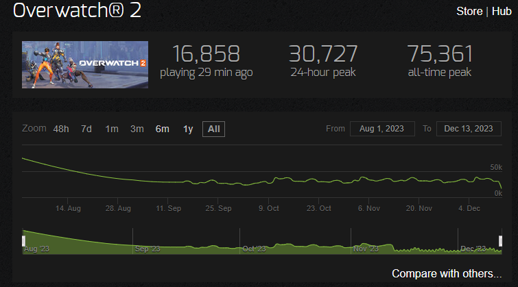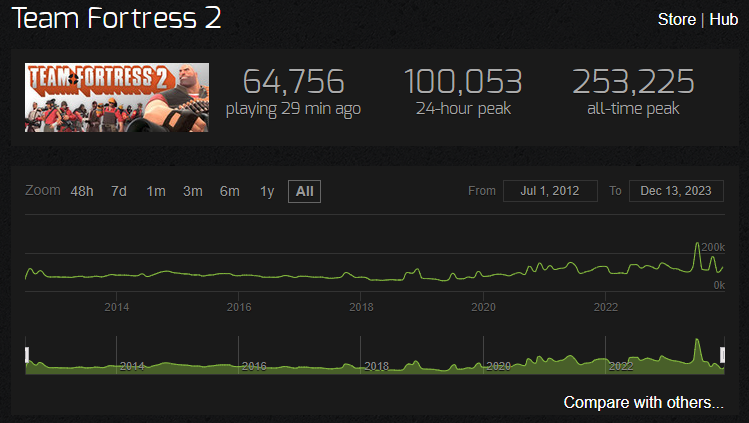 >>922020 Они сами же пишут, что данные могут быть не точными и дают примерную оценку до 94к овнеров. А вообще, не удивлюсь, если на данный момент владельцев меньше 60к, хотя у игры и было обучение примерно на два часа, что, очевидно, затрудняет рефанд. Для меня интереснее тотальный обсёр стимспая. Настолько завышенные цифры ничем не оправдать.