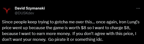 да он это воображаемым соевичкам твитанул, видимо одновременно с повышением цены а потом еще пошел разговаривать сам с собой в тред, ловко разнося в пух и прах глупые гипотетические предъявы, которых никто не делал