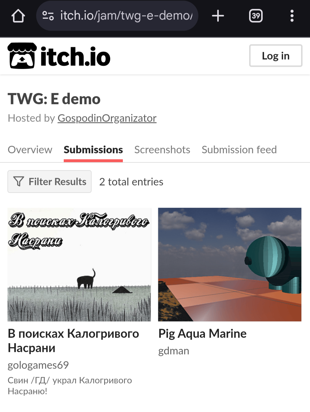 >>1020071 в прошлые разы челы присылали мне на мыло и я заливал на итч. так же и с оценками можно. сёравно по традиции всего пять участников. игропосиделочки на кухне так сказать. а твг это цирк фистинг фестиваль игор.