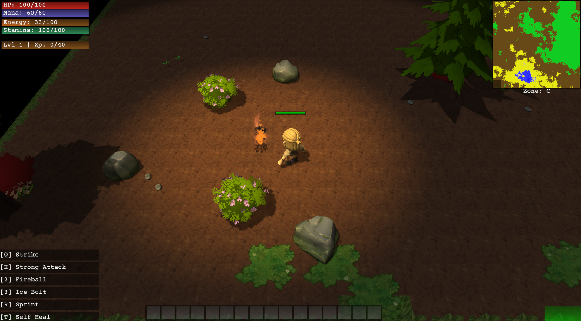 Зачатки фермы сделал. Морковочка растет и собирается. Боевку переделал на более кнопочную. Мобов стало кайтить вполне себе весело. Пытаюсь немножко vfx делать, сделал слеш шейдер супер простеньнкий. Надо уй подлатать и ассетов доделать.