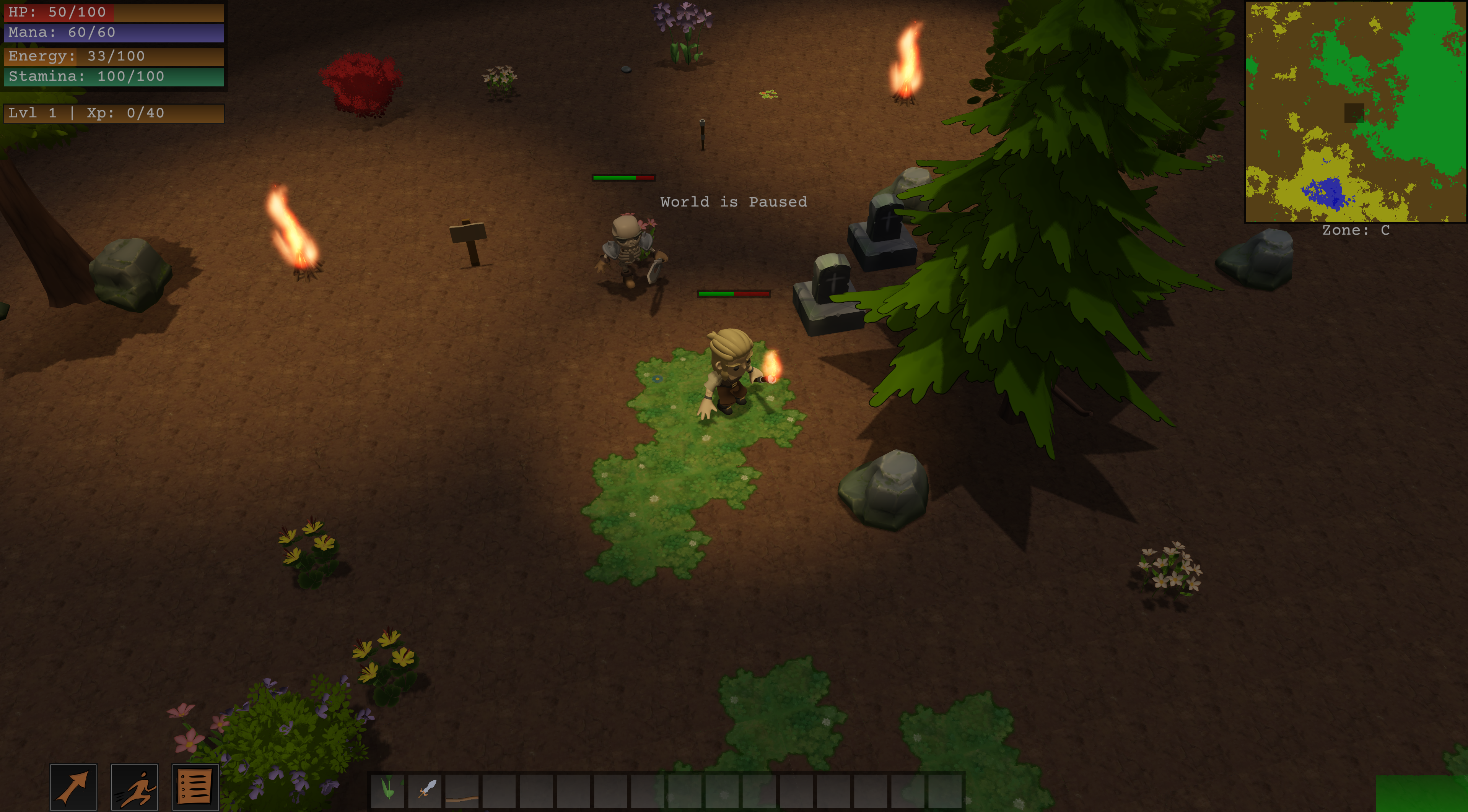 >>1018840 (OP) Хотел сделать выживач по типу донстарв, но с камерой как у тебя (таким же углом камеры) и в 3Д. Теперь вижу насколько это плохое решение. Понятно что деревья можно сделать прозрачными, но как-то все равно оно мешается все и область для динамического файта (экран) как-то маленький. Сделать дальше и детали персонажа не видно. В общем, в голове это казалось лучше.