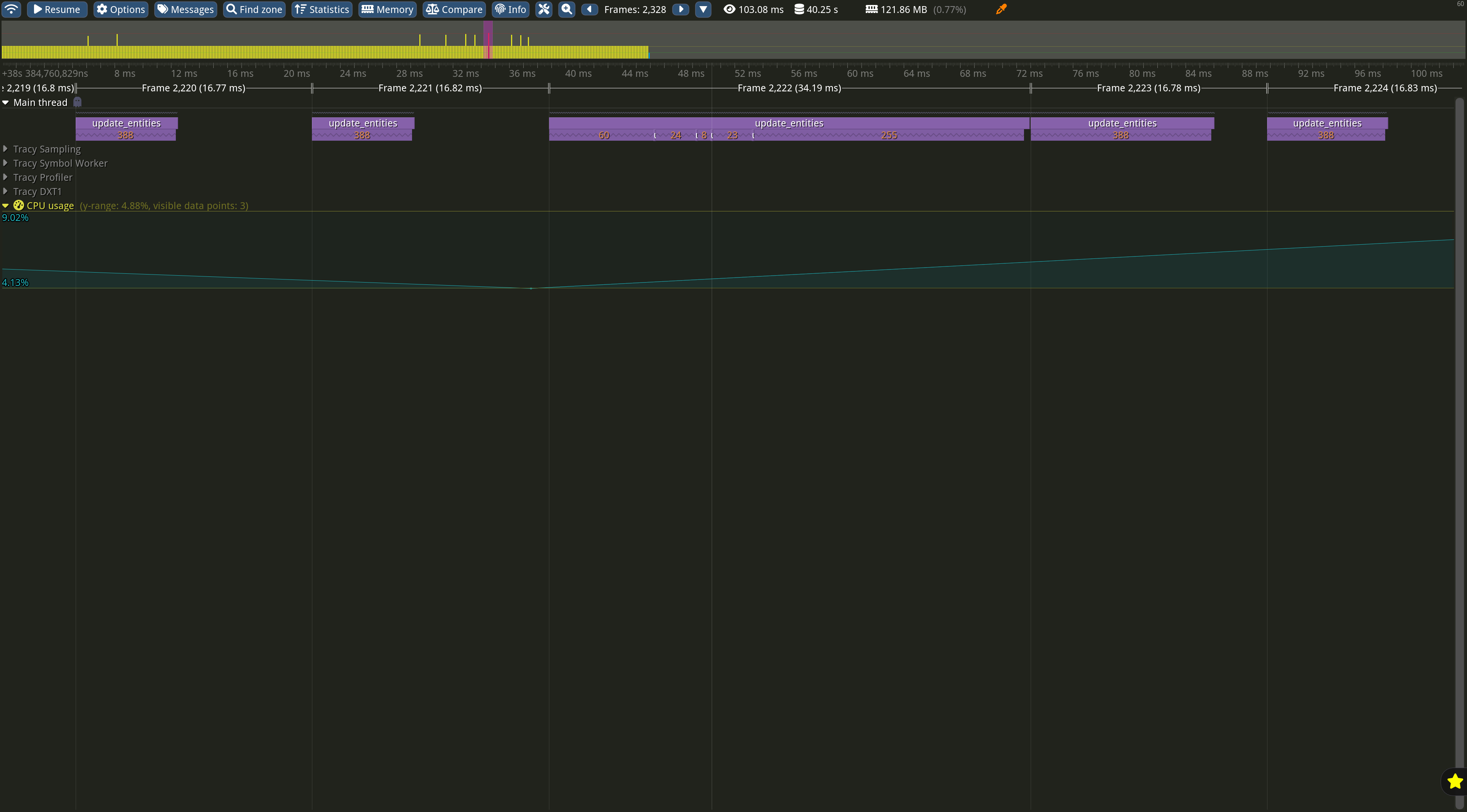 >>1038449 Поиск пути это боль. Т.к. у меня объекты могут произвольно возникать, потому что можно строить и выкидывать всякое на землю. Я пробовал динамически создавать граф, но это тормозит. Впрочем, в этот раз я в нейтив коде, поэтому может получится сделать что-то более производительное.