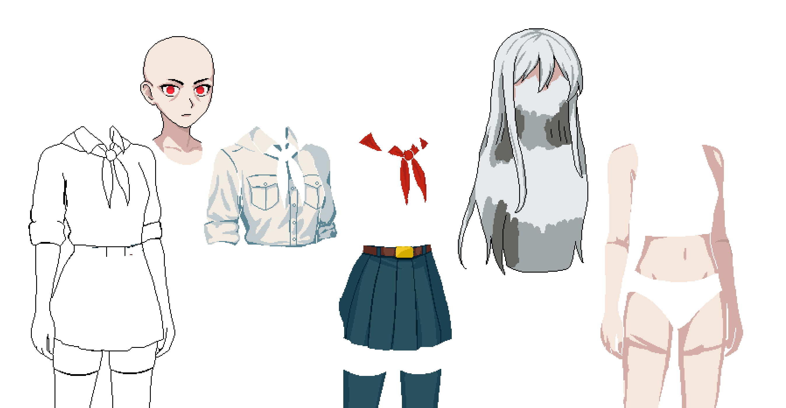 Ковыряю спрайтики ГГшки. По задумке в ходе игры можно будет лутать разную одежду/броню и хочется, чтобы надетый шмот был виден на спрайте в диалогах и в меню инвентаря.