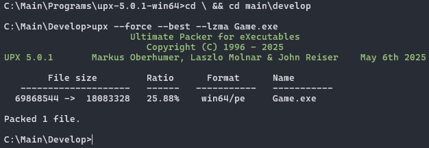 >>1026566 >после сжатия от upx Зачем сжимать exe? На ПК никого уже не волнует вес приложений, у всех >1 ТБ под игрушки даже на старых ноутбуках. Тем более что сжатие UPX детектится (false positive) некоторыми популярными антивирусами; как минимум в прошлом это был способ прятать вирусы.