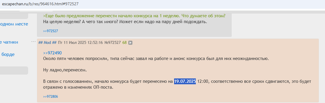 >>1031357 (OP) >Аноним >11/07/25 Птн 00:49:30 >С 12 по 26 июля 2025 года будет проведен конкурс Что за рофлоанонс за день до начала?