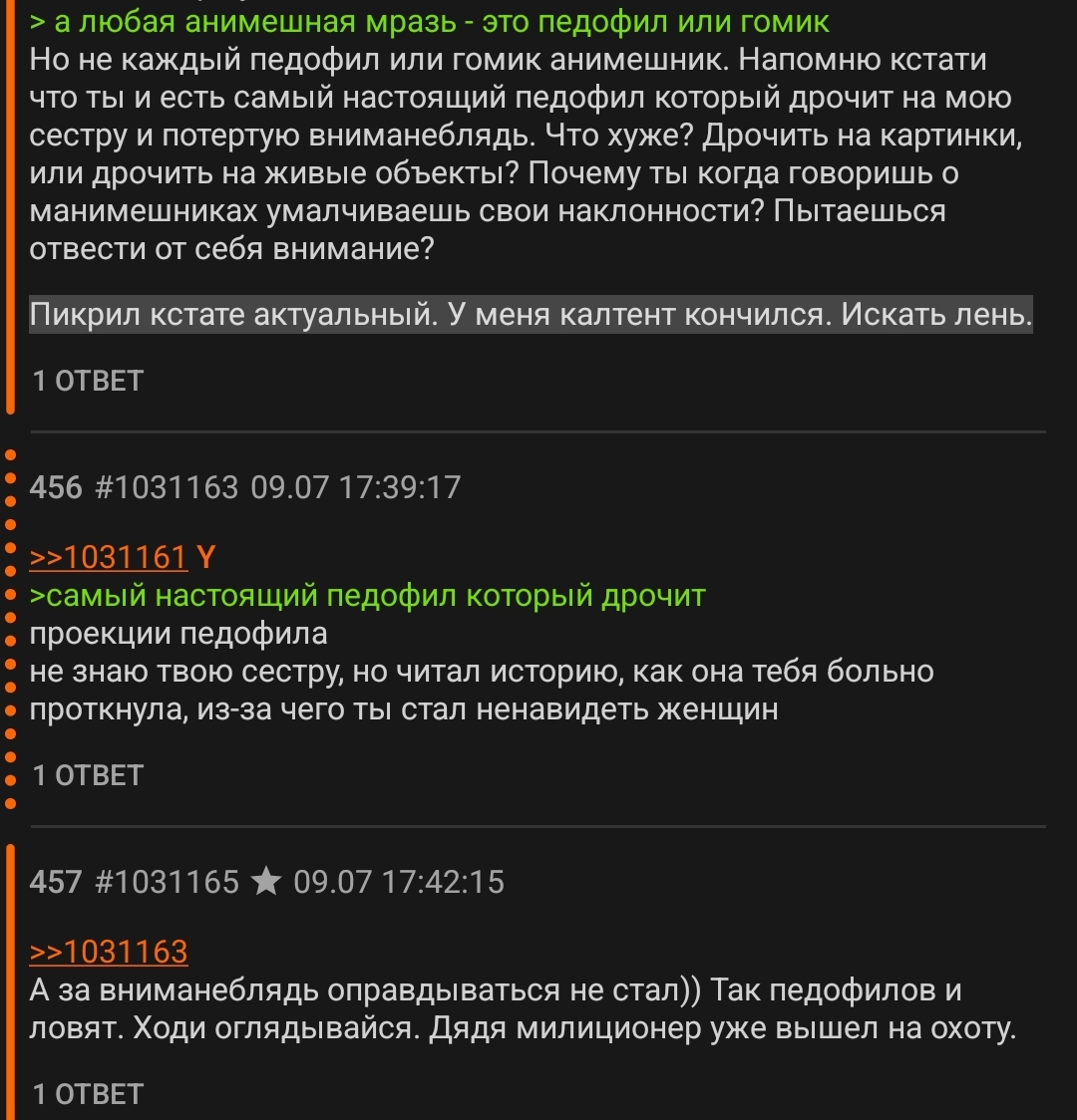 > > Тред ребёнка завайпал, мразь. > Как будто должно было быть иначе на 18+ борде, лол. Ну написано 18 и написано, на заборе тоже много чего пишут, тут пол борды раньше 18 сюда пришли.