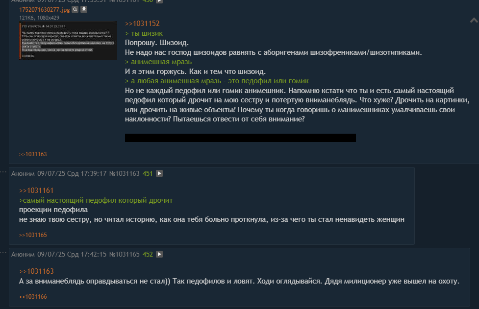 >>1032703 ошибка в интернет дискуссиях с агрессивными шизиками взывать к логике надо шизика унизить и показать ему его место а лучше вообще не тратить на него время