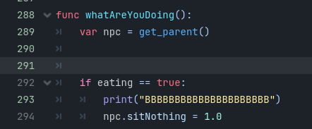 >>1040358 >Mixed use of tabs and spaces for indentation Ошибка смешивания табов и пробелов обычно из-за нажатия пробела или таба в начале строки, когда ты используешь для остальных строк табы или пробелы (GDScript позволяет выбрать одно из двух, но нужно придерживаться выбора в рамках одного файла).
