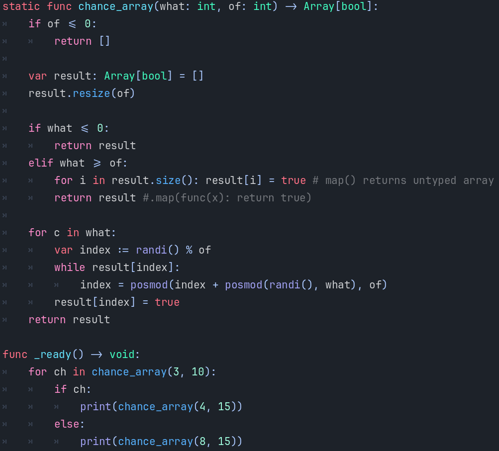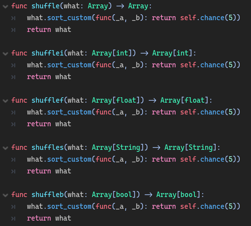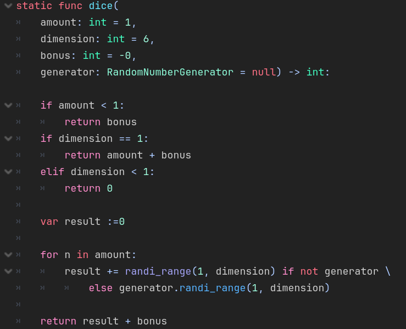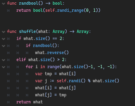 >>1048860 >ты хоть в строчку закопипастил код GDScript позволяет писать в строчку: >func f(): var a; while a: if a: call1(a); else: return a Но это не рекомендуется по очевидной причине.