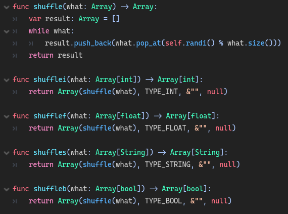 >>1048863 > в сложных моментах можно залезть в сорцы и разобраться Двачую. Вот из недавнего, прямо ИТТ аноны залезли в сорцы и посмотрели, как у Хуана реализовано перемешивание массива: >>1047430>>1047602