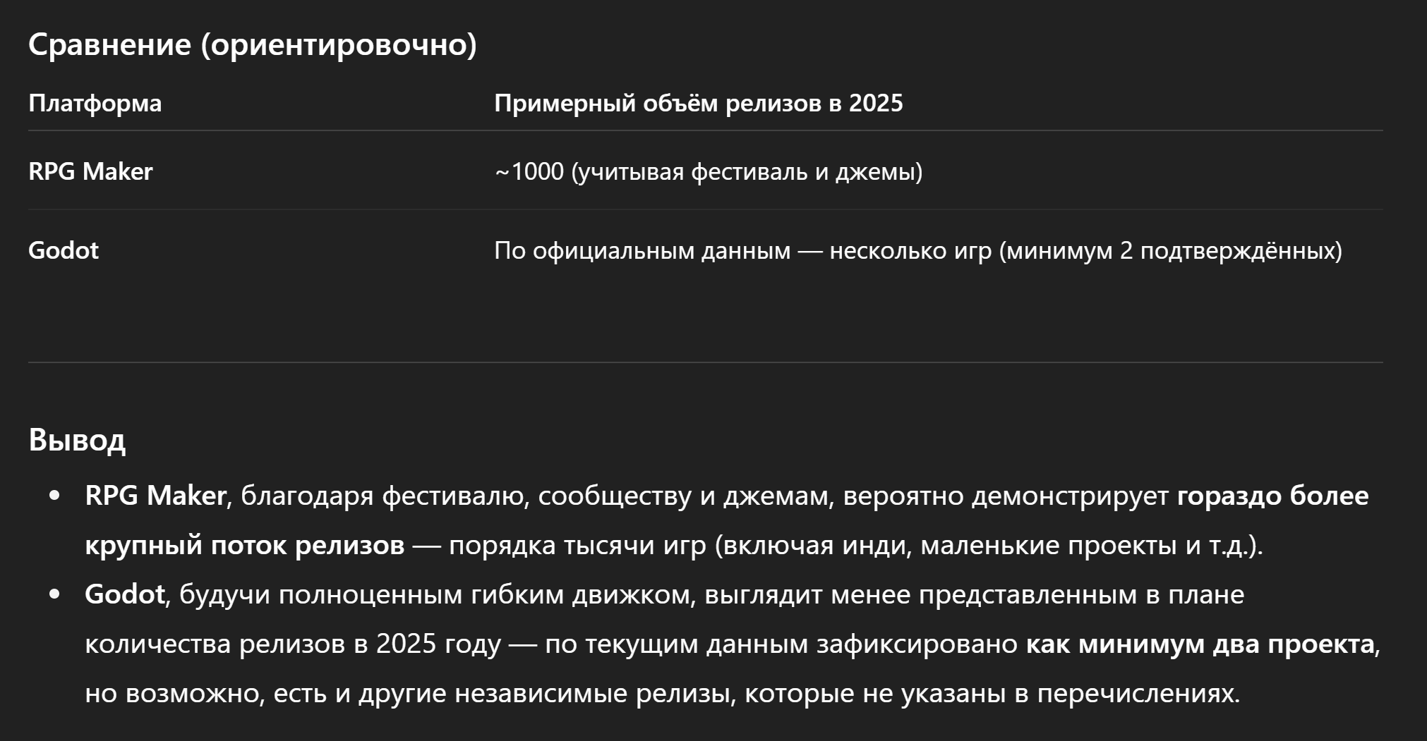 Я дропнул рпгм и перешёл на годот, потому что у меня была идея для игры и я бы просто не смог сделать её на рпгм из-за того, что я нубяра. В других случаях рпгм заебись, пусть в прошлом треде я его и засирал. Типа для новичков потрогать код и охуеть само-то. Потом переходишь на взрослый движек и тебе легко с ним начать работать даже чисто из-за того что ты привык ебаться с лимитами рпгма.