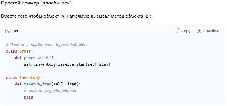 - Объекты должны быть спроектированы так, чтобы они могли взаимодействовать напрямую, если это их прямая ответственность.