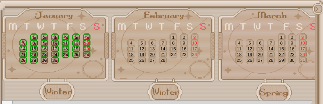 Может кто может посоветовать решение такой проблемы Есть календарь на 10+ лет Каждый день в этом календаре это отдельный обьект поскольку должен закрашиваться и перезакрашиваться и даже вставлятся картинка именно в этот день. Само собой собой это значит 3 с половиной тысячи обьектов и даже если убрать с них тормозящие скрипты типа он поинтер интер, то все равно при открытии окна с календарем, оно открывается 3-4 секунды Я думаю активировать деактивировать месяцы которые держат дни в зависимости от позиции скроллбара, но интересны другие возможные решения на будущее(всегда было интересно попробовать сделать симулятор с тысячей персонажей(пошагово конечно), но там такая же пизда скорей всего будет в окне со списком всех персонажей в мире)