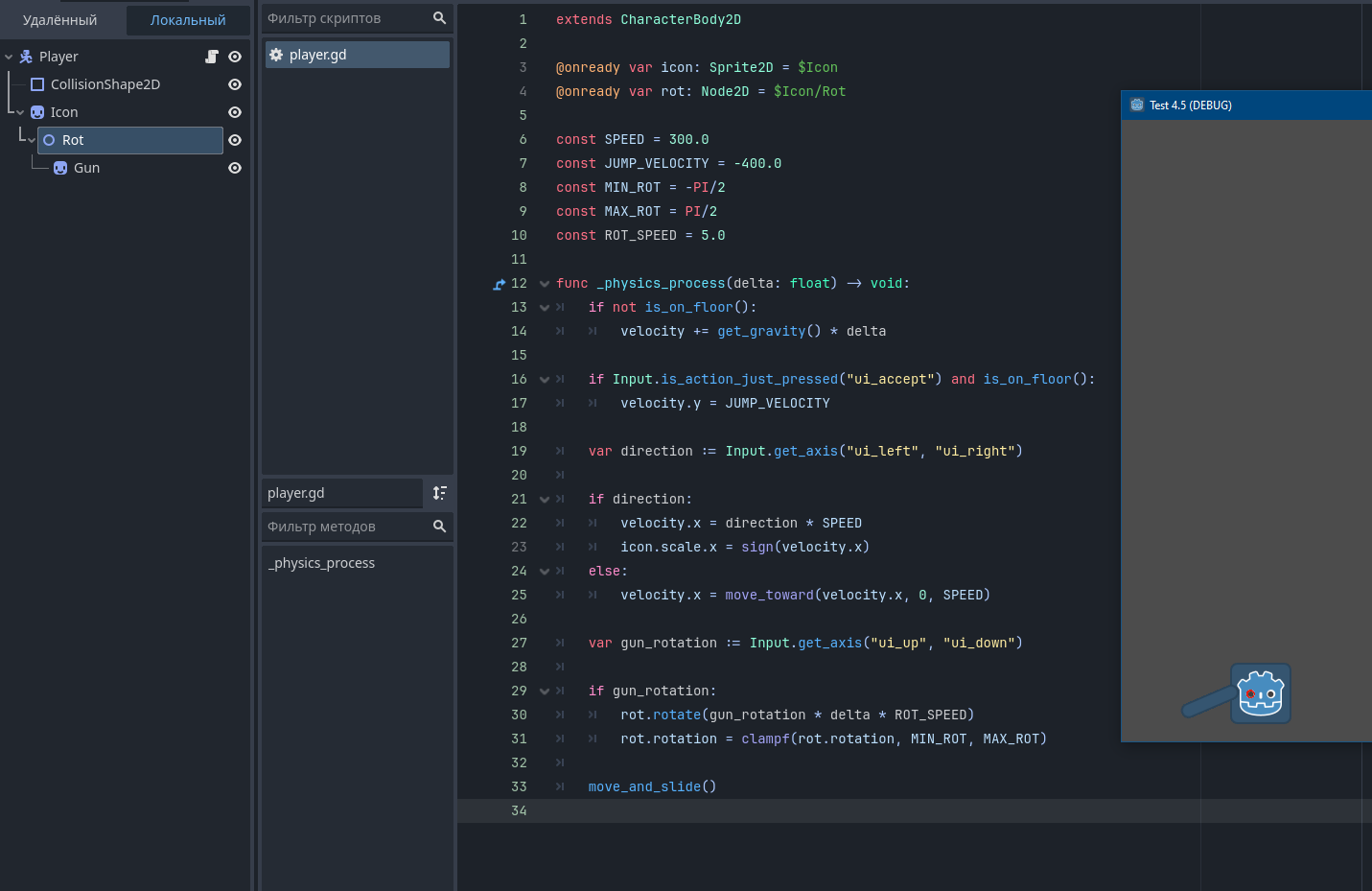 >>1052469 >>1052463 Значит, начать надо с того, что использовать не flip_h, а transform.scale.x +/-1 и выстроить нодами привязки оружия к персу. Пикрелейтеды 1 и 2. Красный глаз у годобота чтобы видеть отражение по оси икс.