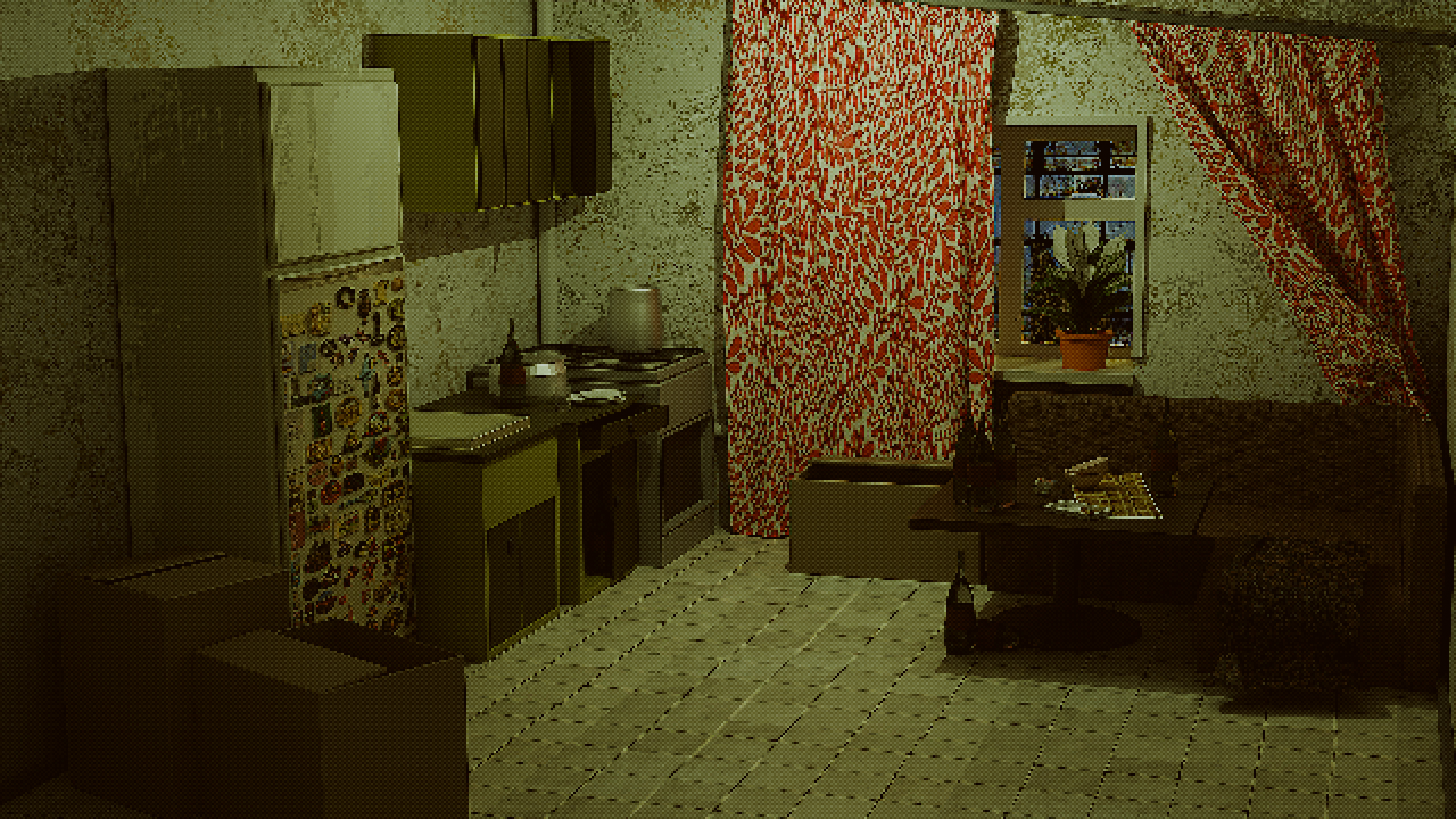Стартовые локации не несут никаких спойлеров, поэтому показываю. Вообще, в ходе работы было мерзкое чувство, потому что кухня получилась слишком отвратительной (в хорошем смысле, я думаю)