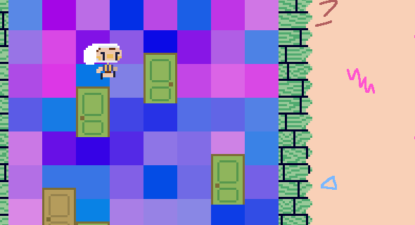 >>313606 Все, починил. Ну.. типа того. Анимации немного кирильные. Но оставлю пока так. Время заканчивать этот симулятор долбежки об потолок и делать остальную игру. Есть вторая комната и я в сомнениях насчет неё. Что я придумал, так это что там возможно есть гигантский цветок. Когда ты выходишь, то стоишь на его листике. И путь на второй этаж - это просто прыганье по листикам( может хоть музыкальными их сделать, для веселья) а на первый спускаешься, становясь на бутон. Он крутиться и спускается. Второй вариант, это что ты просто проваливаешься сквозь пол и летишь через всякие радужные обои с надписями и рисуночками. Что-то в духе кофейка и тортика в Ерзбаунде или той красивой сцены из космической одиссеи 2001. Но для этого наверно рано... И прилетаешь в комнату, где все двери на одном этаже.