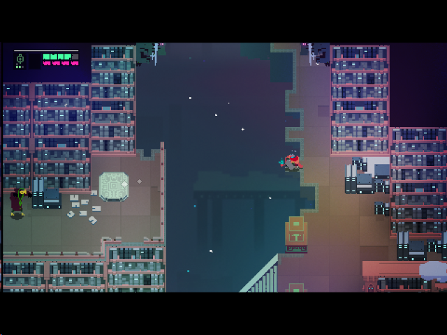 Второе что приходит - интересный бой с врагами, используя ландшафт и платформы для маневрирования. Обменялись ударами на одной платформе, игрок отпрыгнул на другую, уворачиваясь от суперудара, враг прыгнул за ним. Или игрок спрятался за препятствие от вражеского выстрела - враг за ним.