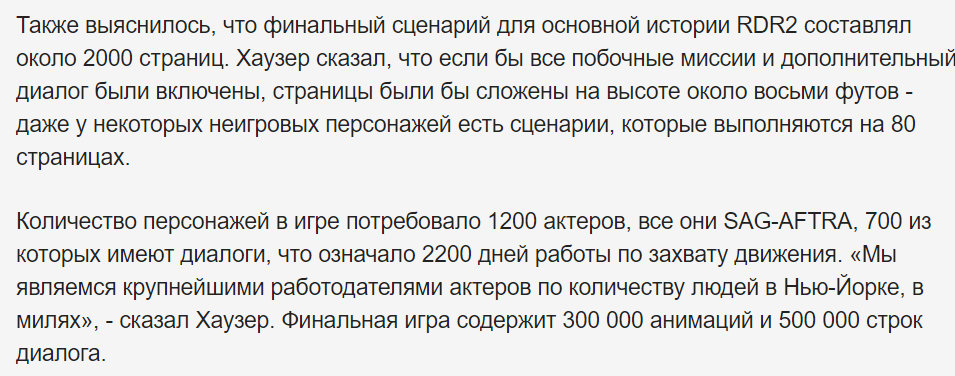 Щас играл в ГТА 5 снова. 5 лет и десятки тысяч часов работы уж точно. Столько анимаций драк, анимацый выкарабкивания из перевернутой машины, и никаких лагов или багов, все чётко, каждый кусочек гигантской игры на 50 гигабайт кода с тысячами скриптов - всё без багов.