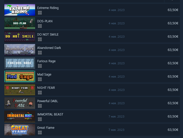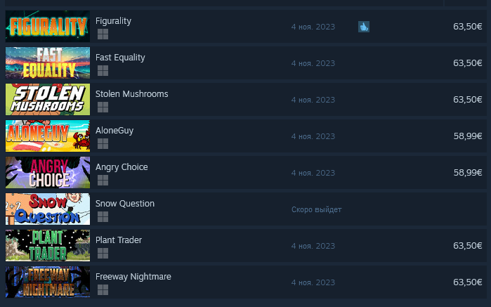 как я понимаю, цель автора - срубить 2-3 продажи с буржуев, у которых игра стоит 60+ баксов как думаете, откуда сами игры в таком количестве? вангую, что попизженны с итча и геймжолта