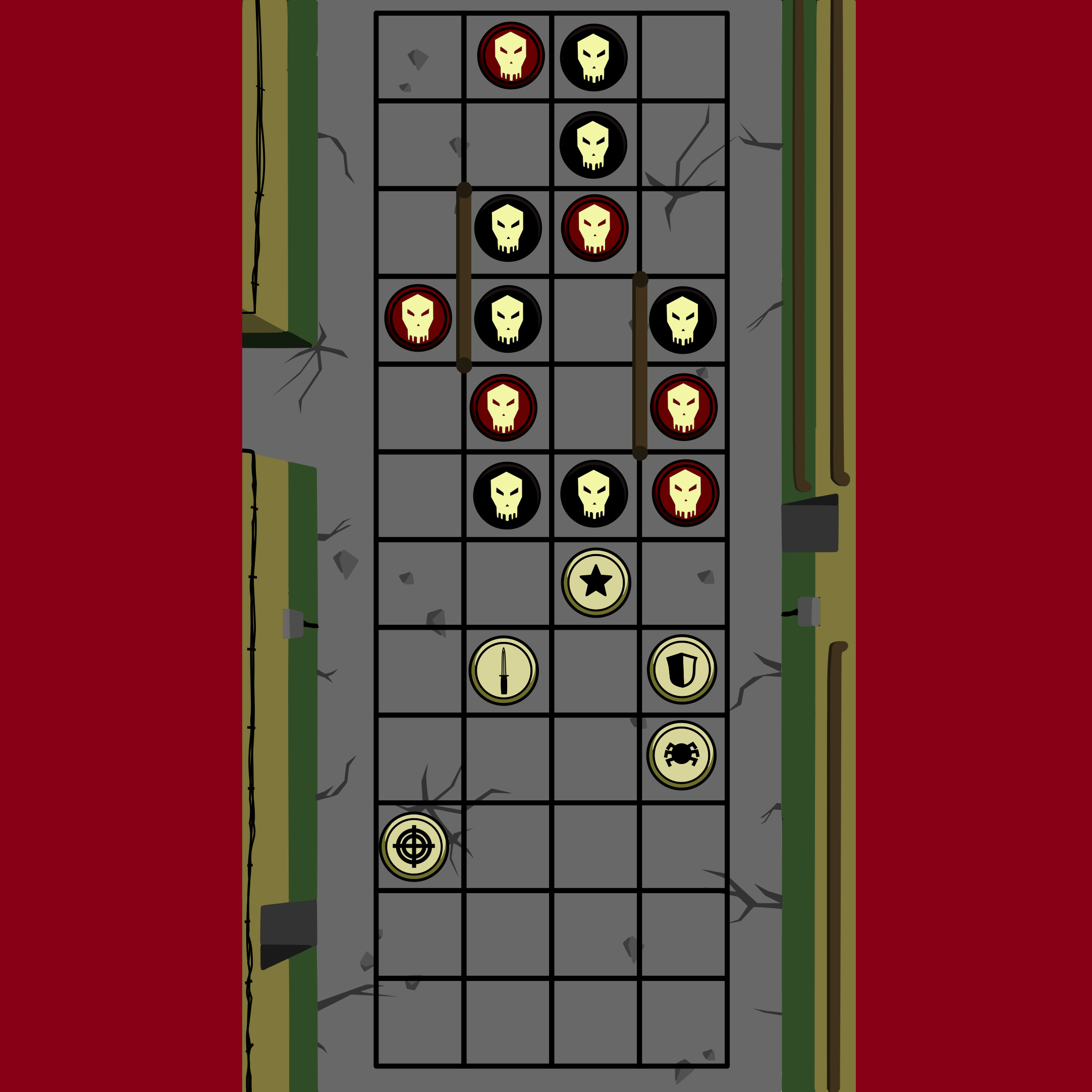 Продолжаю пилить игру по Самосбору. Наконец дорисовал всех пятерых персонажей - теперь уже можно перейти непосредственно к кодингу. Поскольку изначально проект задумывался как быстрый и ненапряжный, анимации было решено пустить под нож - уж слишком сложно рисовать. Поэтому бои будут в стиле Day R скорее(вторая картинка) - то есть поле представлено условно как будто в настольной игре, но тем не менее сохраняются некоторые элементы реала вроде звуков, крови, условных изображений юнитов, окружения и т.д.