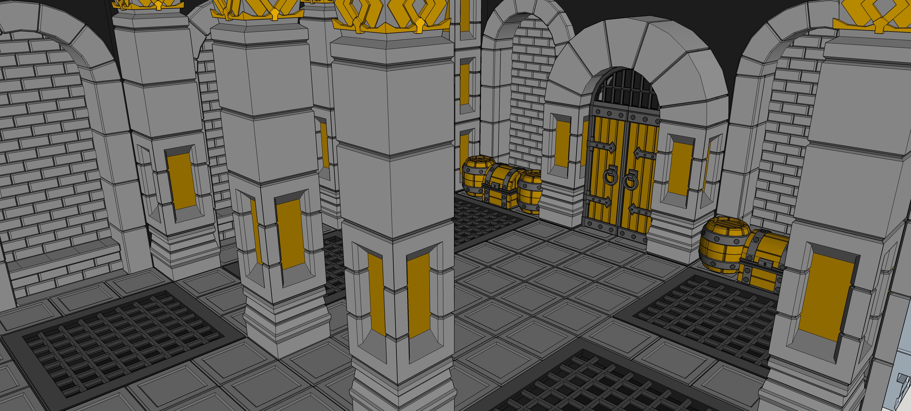 Так что половину моделей придётся переделать. Вместо раскрашивания материалов рисовать текстурки в ручную. И сократить количество полигонов, так что просто замоделить каждый камушек уже не выйдет, ведь моделька нужна именно радикально лоупольная.
