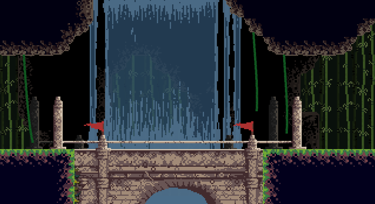 >>678955 >Я просто уверен, что эти тайлы земли, этот бамбук, эти флаги я видел раньше. >Ассет пак скачал? использовал узор из своей игры с джема, кидал месяца два назад наверное. Бамбук сам рисовал, но там особо ничего не порисуешь, палка да палка, может поэтому он кажется знакомым? С флажком аналогично, нарисовал треугольник, сделал анимацию "волны" >Водопад прямиком из обсурити. Там был совершенно другой водопад