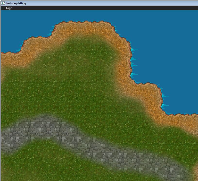 >>685076 Вода и прочие жидкости (лава\кислота\всякая слизь). Пока придумал только один вариант, это просто добавление тайлов поверх земли плюс метод с пикрелейтед 2, для более ровного берега (это текстура с 4 каналами и для каждого своя текстура + базовая текстура, т.е. не больше 5 текстур на кусок карты). Если для какой-нибудь речки, крутого берега это смотрится, вроде, ничего, то для пляжа, озера оно не годится. Ну или надо просто для этого варианта свой набор текстур. Другой вариант связан с генерации сетки специально для воды, но то полная хуйня с кучей траты времени.