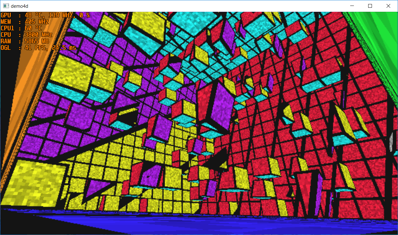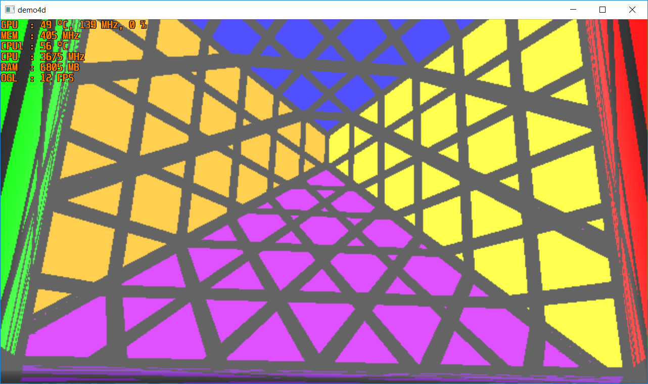 Хочу запилить игроподобную демку - четырехмерный лабиринт от первого лица. За несколько дней сделал примитивный рейтрейсер, рисующий аналог куба в 4D, но это похоже тупиковый вариант, потому что даже всего с одним кубом в кадре и разрешением 640х480 выдает 25 фпс. Пока непонятно, либо пытаться как-то это оптимизировать, либо выкинуть рейтрейсер и использовать алгоритмы растеризации, как это делается в обычных 3D движках (но это пока что кажется слишком сложным).