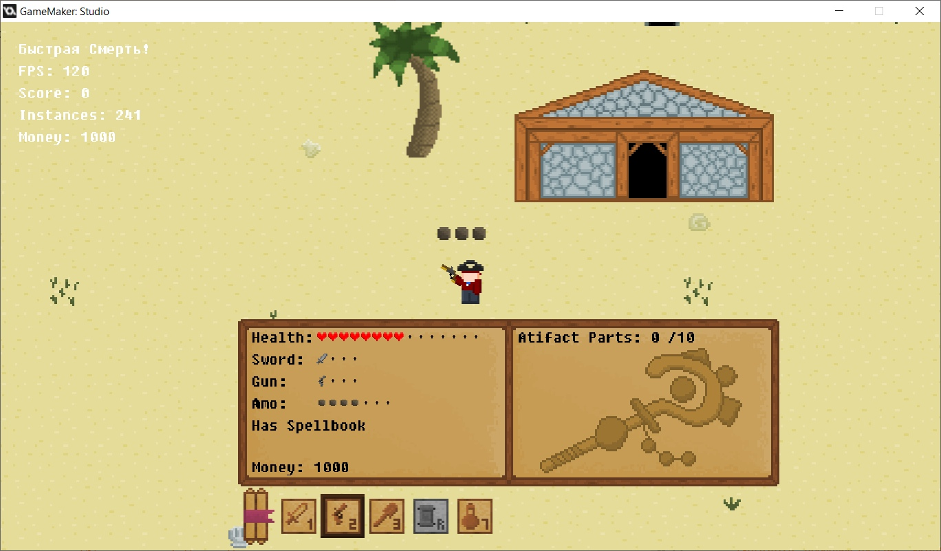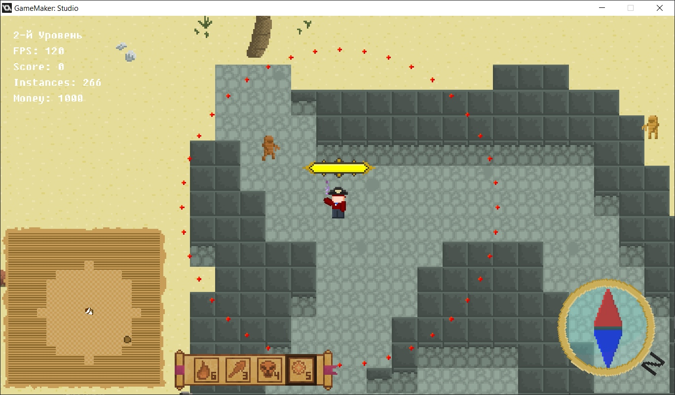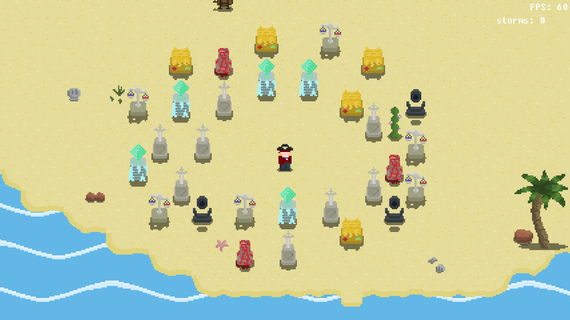 Только-только закончился TWG, а вдохновение осталось. Значит, нужно продолжать пилить свое поделие влажно мечтая о релизе. Тред существует как мой дополнительный мотиватор для продолжения разработки (ну и отчетник, если кому-то будет интересно наблюдать за процессом). Жанр: roguelikelite, adventure Платформа: GameMaker Pro 8.0/GameMaker Studio 1.4 Плаваем на корабле по постоянно меняющемуся океану, посещаем острова в поисках сокровищ, исследуем пещеры и подземелья(new!), собираем части артефакта, указывающего путь к источнику бессмертия. Со времени конкурса концепция игры была пересмотрена - теперь это Dungeon Crawler, прикрученный к морским путешествиям. Системы инвентаря как таковой нет - вместо этого ГГ получает бонусы от найденных кладов/артефактов и новые инструменты для аннигиляции многочисленных монстров.